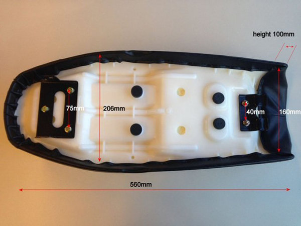 Mål: Højde 115 mm, Bredde ved tank: 180 mm, Sæde længde: ca. 330 mm polstring – total 600 mm