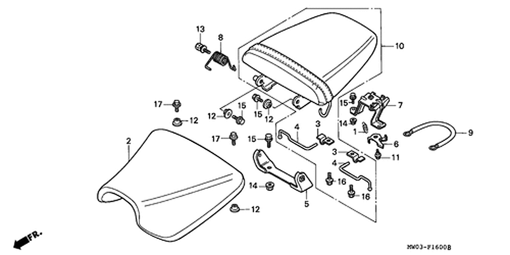 | 1 | 2 | 77100-MW0-000 | SÆDE, FOR, INCL. 2 STK. NR 12, RIDSET |