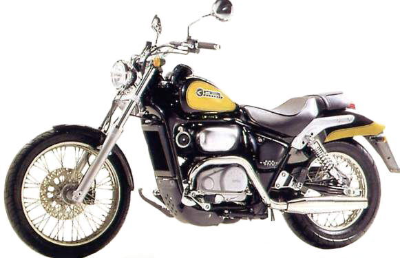 | Mål og vægt | Totallængde: 2300 mm. Sædehøjde: 720 mm. Tankkapacitet/reserve: 12/2 liter. Egenvægt: 145 kg. |