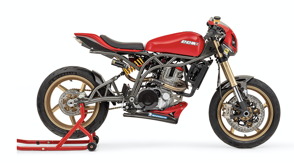 1-cylindret vandkølet 4-taktsmotor med 2 overliggende kædetrukne knastaksler. 4 ventiler pr. cyl. Boring: 100 mm. Slaglængde: 76,5 mm. Slagvolumen: 600 cm3. Kompression: 12:1. Maks. effekt: 62 hk (46 kW). Maks. moment: 66 Nm ved 5500 o/m. Indsprøjtning Mikuni D45. |