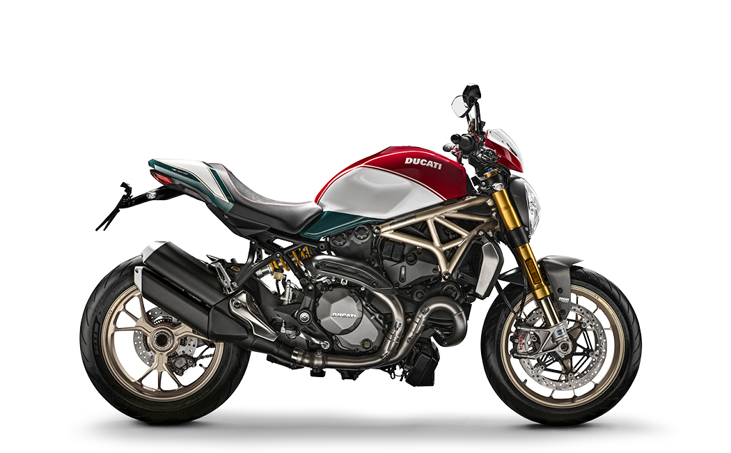 | Udstyr | Riding Modes, Power Mode, Bosch Cornering ABS, Ducati Traction Control, Ducati Wheelie Control, Öhlins styrdæmper, Ducati Quick-Shift, TFT farve display, LED for og baglys, Daytime Running light, LED blinklys, USB stik, Special sæde med broderet jubilæums logo, Justerbare bremse- og koblingsgreb. |