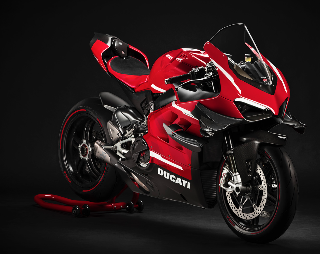 Riding Modes, Power Modes, Bosch Cornering ABS EVO, Ducati Traction Control (DTC) EVO, Ducati Wheelie Control (DWC) EVO, Ducati Slide Control (DSC), Engine Brake Control (EBC) EVO, Auto tyre calibration, Ducati Power Launch (DPL), Ducati Quick Shift (DQS) up/down EVO, Full LED lighting with Daytime Running Light (DRL), GPS Modul, Lap Timer EVO, PIT Limiter, Öhlins styrdæmper, Quick adjustment buttons, Lithium-ion batteri, Selvafbrydende blinklys, Marchesini aluminium forged wheels, High-flow luftfilter, Carbon forskærm. |