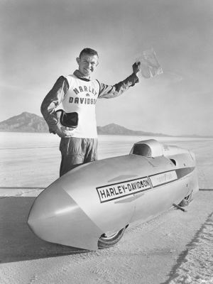 I en cigarformet racer trukket af en 250ccm Sprint CR motor, sætter George Roeder hastigheds rekord for A klasse og C klasse løbene, med et gennemsnit på 285 km/t.