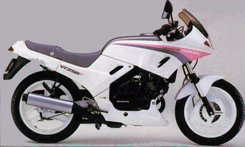 | Motor | 2-cylindret vandkølet 4-takts V-motor med 2x1 overliggende kædetrukket knastaksel. 4 ventiler pr. cylinder. Boring: 60 mm. Slaglængde: 44,1 mm. Slagvolumen: 248 ccm. Kompression: 11:1. Maks. effekt: 35 hk / 25,5 kW ved 11000 o/min. Maks. moment: 21,5 Nm ved 10000 o/min. 2 stk. 32 mm keihin karburatorer. |