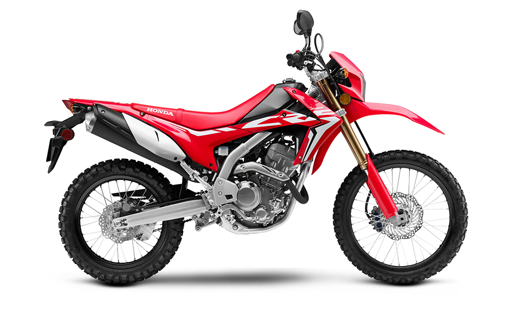 | Beskrivelse | Den dobbeltfunktionelle CRF250L er klar til at takle hvad som helst. Baseret på et skarpt CRF250R-afledt karrosseri, og dens 250 ccm enkeltcylindermotor sørger for masser af kraft, moment og hurtig respons. Derudover er der trygheden ved ABS-bremser og tydelige informationer fra det digitale instrumentbræt, der bl.a. omfatter en omdrejningstæller og brændstofsmåler. Baglygterne, blinklys og nummerpladeholderen er placeret godt beskyttet. CRF250L er sand en all-round-motorcykel. Dens smalle form hjælper ikke bare i trafikken, men også off-road, hvor den glatte sæde-/ tank-sammenbygning gør det muligt for føreren at flytte vægten frit. CRF250L har stilelementer, der er taget direkte fra Hondas CRF250R MX-maskine, og er klar til hvad som helst. Den er hårdfør, praktisk og på hjemmebane i byen såvel som ude på landet. |