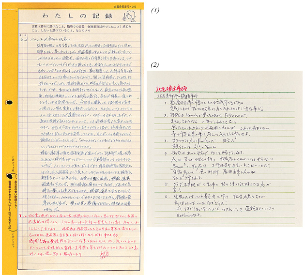 Fujisawa was overjoyed, saying: "You have all done a great job. That was precisely my wish: to have people even on the frontline make plans and record their achievements, and to have more and more people draw up plans concerning their dreams. You are using My Record just as I had pictured it." Then he signed Ito's two My Record notebooks.
