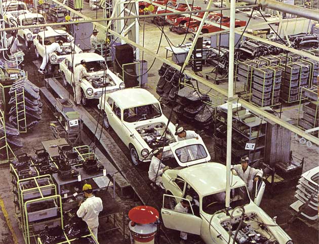 The S600 Coupe on the assembly line at Sayama Factory. The metal casting plant, upon the start of operations in April 1965, initially produced dies for the Coupe.