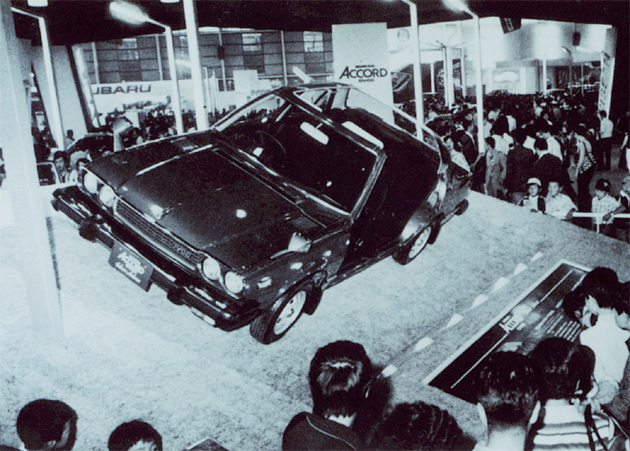 The Accord four-door sedan attracted the gaze of visitors at the 22nd Tokyo Motor Show, held in 1977.