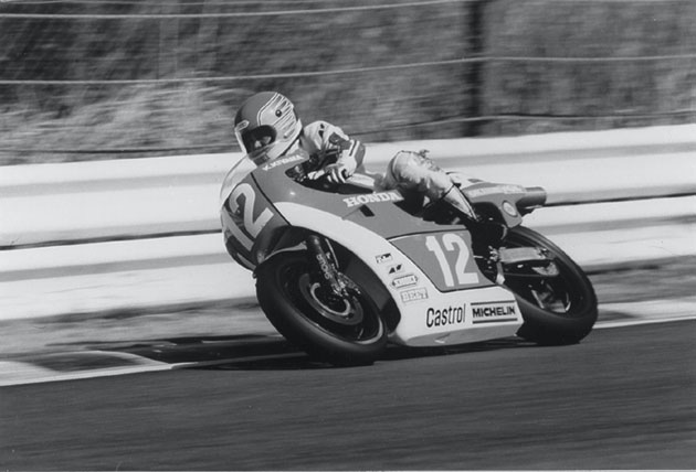 The NR500 was refined through a long series of tests at Suzuka Circuit. The rider in the photo is Takazumi Katayama (January 1980).