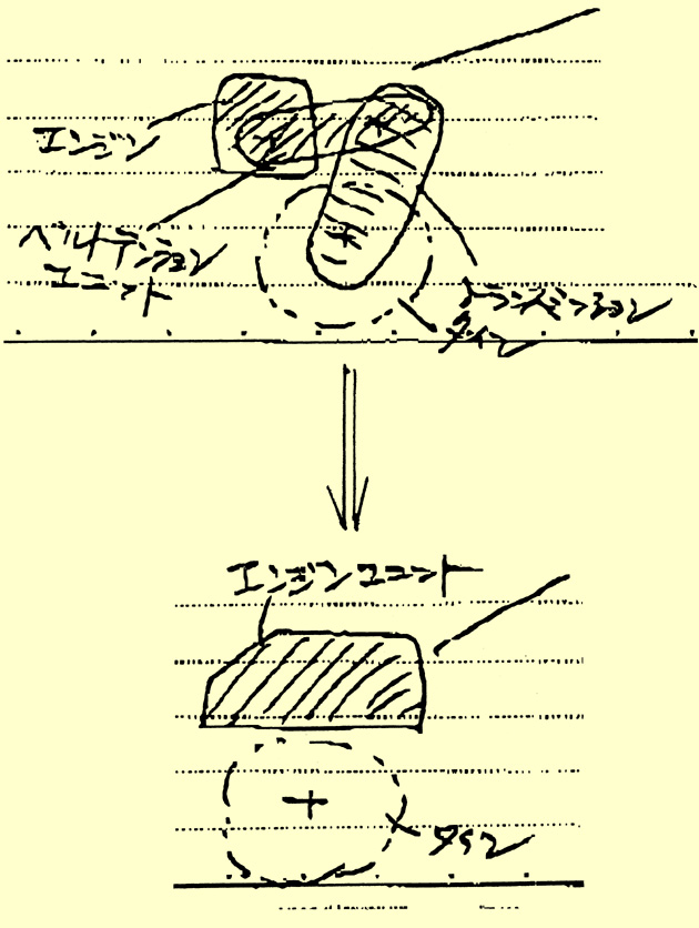To achieve a compact profile, the team examined a vertical layout that arranged the components along one line. (Courtesy of Gunji Saito)