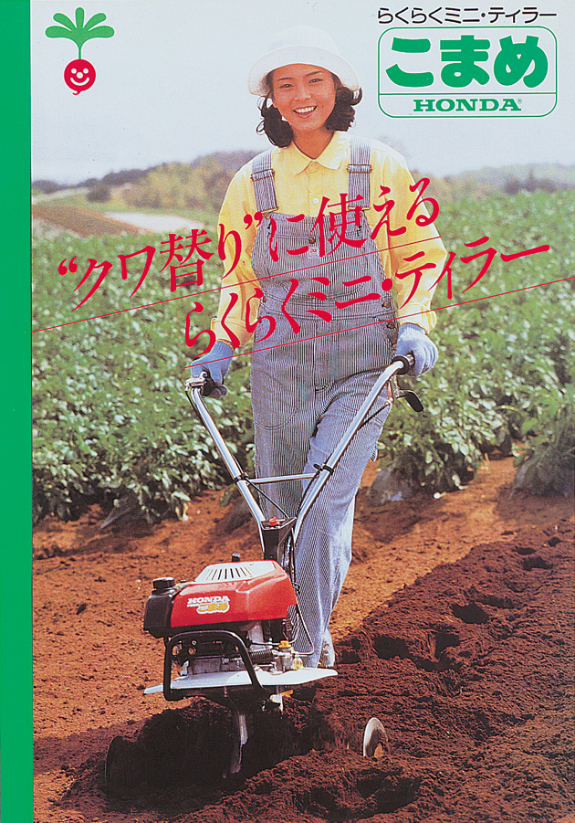 The nickname was one reason for the product's success. "Komame" was coined by Masaru Miyata, then in charge of Power Products domestic sales, who had characterized the machine as being "small and cute." Successful, too, was the second year's TV commercial produced by the sales-promotion team and a marketing campaign by the domestic sales team using the slogan, "Weekend Gardening." As a result, sales in the home gardening market, Komame's initial target, also grew.