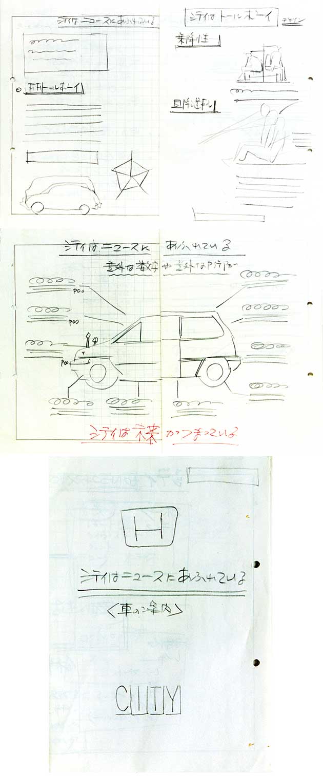Full-scale work was now underway on the creation of product brochures and catalogues featuring the new car. By then, the developers” product name, SA-7, already had been replaced with the product name “City,” which Arisawa had wanted for the car. The staffers were quick to finish the remainder of the catalogue containing a basic concept for the subsequent campaigns in advertising and promotion.