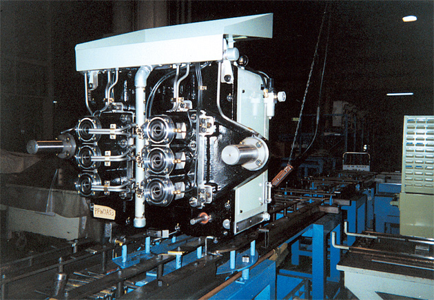 According to Jinsei Ida, then an engineer with the First Design Block, "I think Mr. Oishi (Katsura Oishi, then managing director of EG) had hoped it would become something of a press machine, since the relationship between dedicated processing modules and the machine center was similar to that between dies and a press machine." Ida, in fact, was later appointed LPL(Large Project Leader) for the second-phase development aimed at mass-production applications for the machine. A press machine offers a significant degree of flexibility, because different specifications can be handled by replacing the dies rather than changing the machine. In a similar way, the module center was intended to facilitate processing for different specifications simply by changing its ganged heads. The concept of enabling flexible combinations via ganged heads suggested there was the potential for dramatic changes in the conventional production line system.