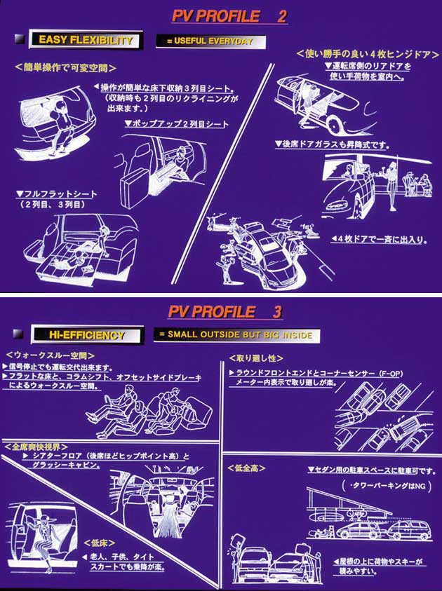“The walk-through aisle was the thing that really impressed me with many minivans in the U.S.,” stated Odagaki. “When the car is driving through beautiful scenery, passengers could easily change seats to get a better view. It was like taking a bullet trainanother means of rapid transportationsince the passengers could freely move to other empty seats. Therefore, we wanted to create a “family bullet train.” It was a benefit that no other car could provide, and we were determined to develop such a car.”
