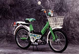 Denne familie knallert var specielt designet til kvinder, og havde et komfortabelt, lavt stel og en kurv på fronten.