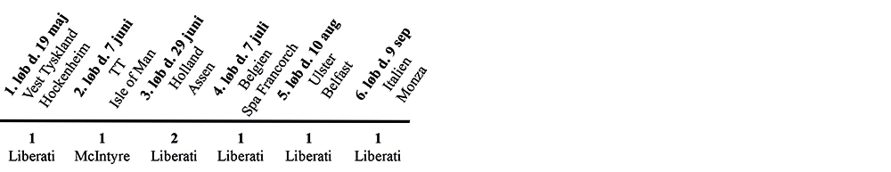 • Motoren er nu bygget med 4 separate cylindre og topstykkerne i par (en helt ny motor var under udvikling som Gilera trak sig fra race)