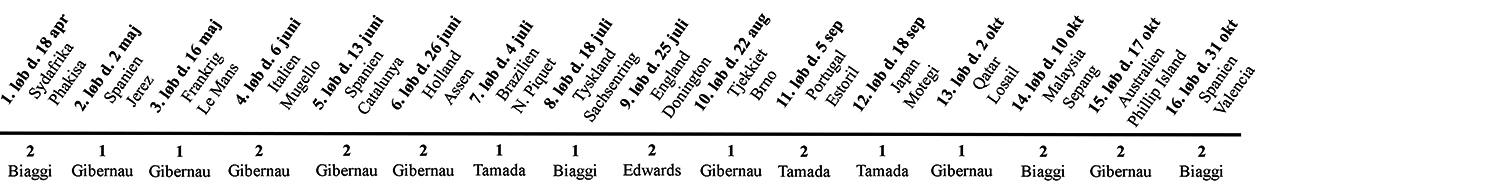 • Boring og slaglængde ukendt, men slagvolumen = 989.2cc