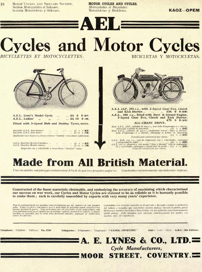 AEL var en motorcykel og reservedele forhandler i Coventry. De satte forskellige 147 cc og 348 cc motorer på forstærkede cykelstel. Motorerne var fra Villiers, JAP og Blackburne. Stellene blev højst sandsynligt bygget af Hobart i Coventry.