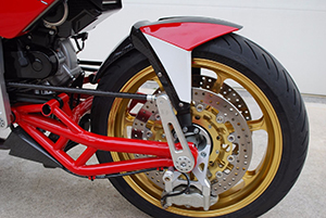 Den typiske motorcykel har en forgaffel med 2 forgaffelben enten som standard eller upside-down, og en dobbelt eller enkeltsidet svingarm med 1 eller 2 støddæmpere bagpå.