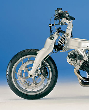 En motorcykels affjedring har et dobbelt formål: den er afgørende for motorcyklens styreegenskaber og bremseegenskaber, samtidig med at den gør kørslen mere sikker og komfortabel.