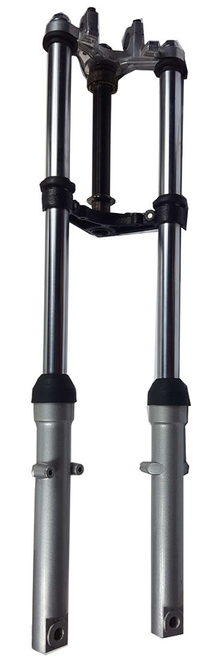Forhjulet er oftest affjedret af en hydraulisk teleskopgaffel, med spiralfjedre og oliedæmpning. Den kan have luft som hjælpefjeder og i nogle tilfælde mekaniske eller hydrauliske antidyk-mekanismer, der reducerer forgaflens sammentrykning under bremsning. I stedet for teleskopgaflen anvender Bimota navcenterstyring-princippet på deres Tesi. BMW skiftede fra traditionel forgaffel til deres Telelever-forgaffel, og i 2004 lancerede tyskerne Duolever-gaflen. Alle tre kombinerer de bedste egenskaber fra de førnævnte principper. Fælles for svinggaflen, Telelever- og Duolever-systemet er den indbyggede, geometrisk betingede antidykvirkning, som her fungerer glimrende. På nogle custom motorcykler (bl.a. Harley Davidson) bruges en springer forgaffel, der teknisk set minder om BMW's telelever, dog er springer gaflen opbygget noget anderledes.