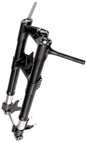 Gaffelbenenes diameter skal stå i forhold til motorcyklens størrelse og vægt for at give tilstrækkelig stabilitet. Men vendes forgaflen "på hovedet" (upside down-gaffel, USD), så standrørene er tykkest og gliderørene tyndere, opnås både større stivhed, mindre tendenser til fleksning og lavere uaffjedret masse, hvilket igen giver bedre vejgreb. De mest sofistikerede upside down-gafler har inderrør, som er coated med gylden titaniumnitrid (TiN) eller sort carbonnitrid (TiCN), som reducerer friktionen og får gaflen til at arbejde hurtigere. Tendensen går mod flere og flere justeringsmuligheder på forhjulsaffjedringen. Sportsmotorcykler har oftest både justerbar fjederforspænding, kompressions- og returdæmpning. På den måde tilgodeses helt forskellige kørsels- og komfortbehov cyklen tilpasses førerens vægt og fartambitioner.