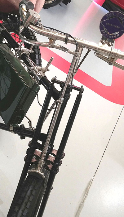 De tidligste motorcykler var i praksis en cykel med en hjælpemotor påmonteret og det eneste bremse system de havde, var at sætte foden ned. En af de første motorcykler der havde nogen form for bremsesystem var Steffey Motorcycles fra Philadelphia i 1902. Den brugte en hvælvet plade der trykkede ned på forhjulet. Omkring 1909 blev båndbremsen introduceret, den havde et læderbånd, der løb omkring en tromle, og så strammede man båndet så meget man kunne for at stoppe motorcyklen.