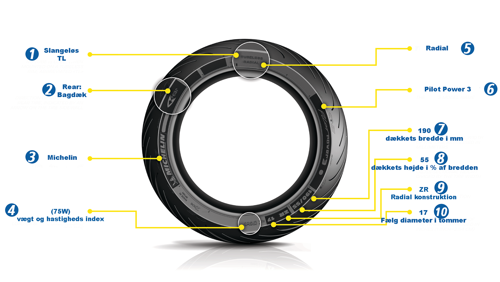 Særligt motorstærke mc'er har i dag fra 180 og helt op til 240 millimeter brede bagdæk med 55- eller helt ekstremt 50-profil for at sikre tilstrækkelig grip i asfalten. Bagdæk i dimensionen 190/50 er efterhånden obligatorisk på en supercykel, men den højere 190/55 ses nu også. I de seneste år har radialdækkene i stigende grad afløst diagonaldæk på sports- og racermotorcykler.