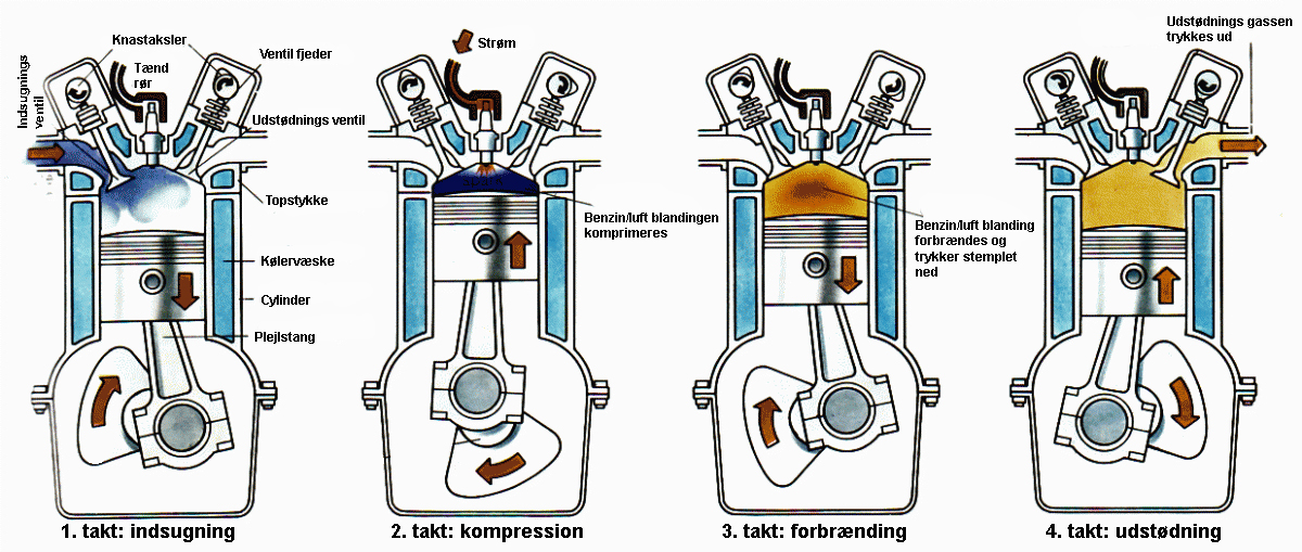2-takts motorer har færre dele end en 4-takts motor, og laver faktisk dobbelt så mange kraft-takter som en 4-takts motor, pr. omdrejning.